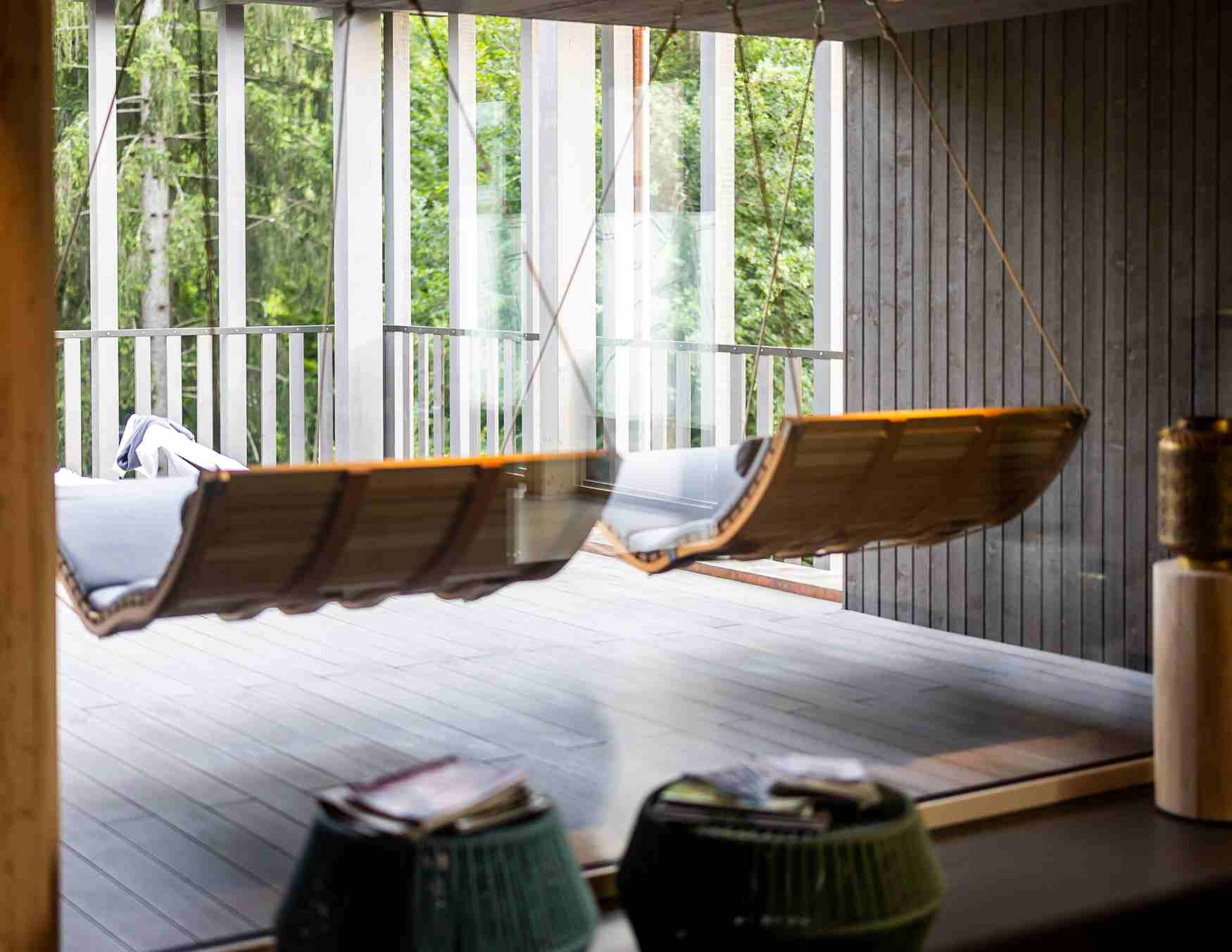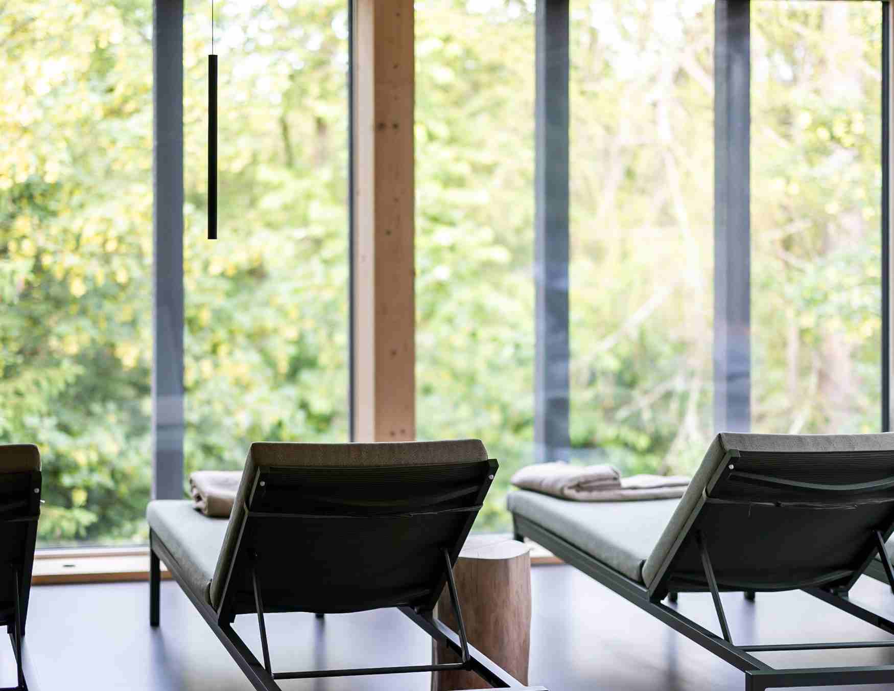 Das neu eröffnete Spa ist grandios! Saunieren mit Blick in den Wald, Relaxen auf den Schwebebetten der Terrasse, beleben im Granderwasser Pool.